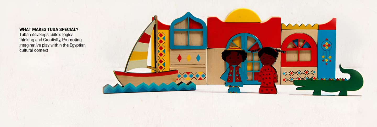 Tuba is a beautifully crafted wooden toy designed to spark children’s curiosity and creativity while teaching them about the rich cultural diversity of Egypt’s regional societies. Through tactile play, children actively engage with each piece, exploring shapes and symbols representing different communities.