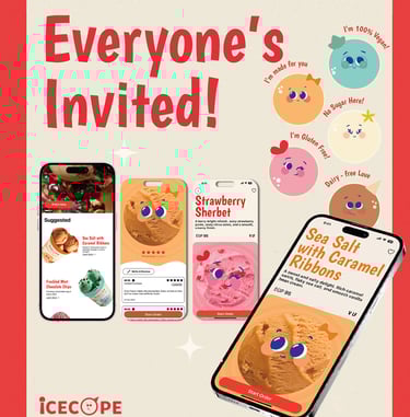 This project focuses on creating a seamless, inclusive application designed specifically for ice cream lovers with dietary needs—an audience often overlooked by traditional shops. Users with restrictions frequently struggle on delivery apps due to unclear labels and limited suitable options, leading to frustration and a poor experience. This platform solves that gap by offering clearly labeled dietary information, tailored recommendations, and a smooth, enjoyable ordering process that empowers every user to find ice cream that truly fits their needs.